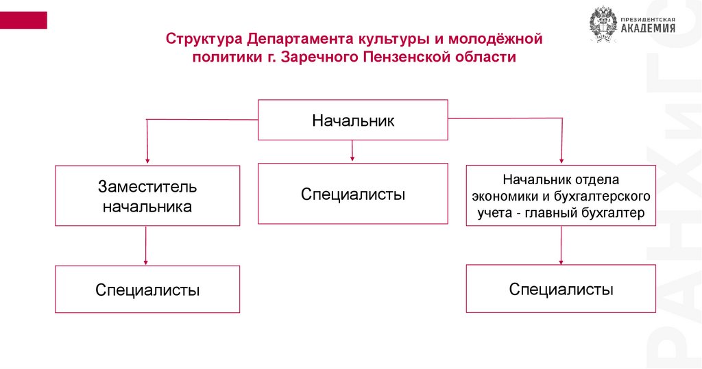 Структура Департамента культуры и молодёжнойполитики г. Заречного Пензенской области