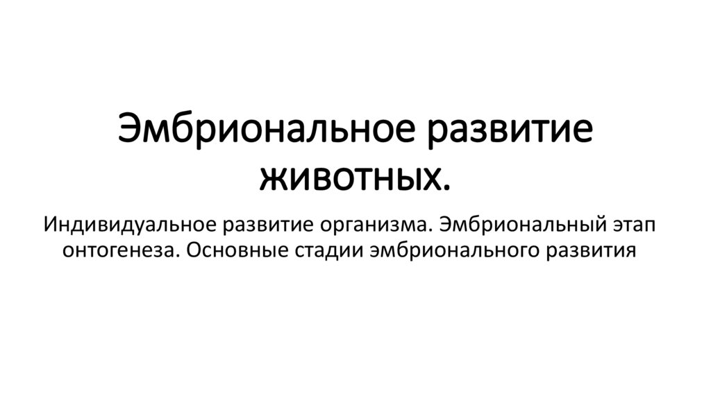 Индивидуальное развитие организма. Эмбриональный этапонтогенеза. Основные стадии эмбрионального развития