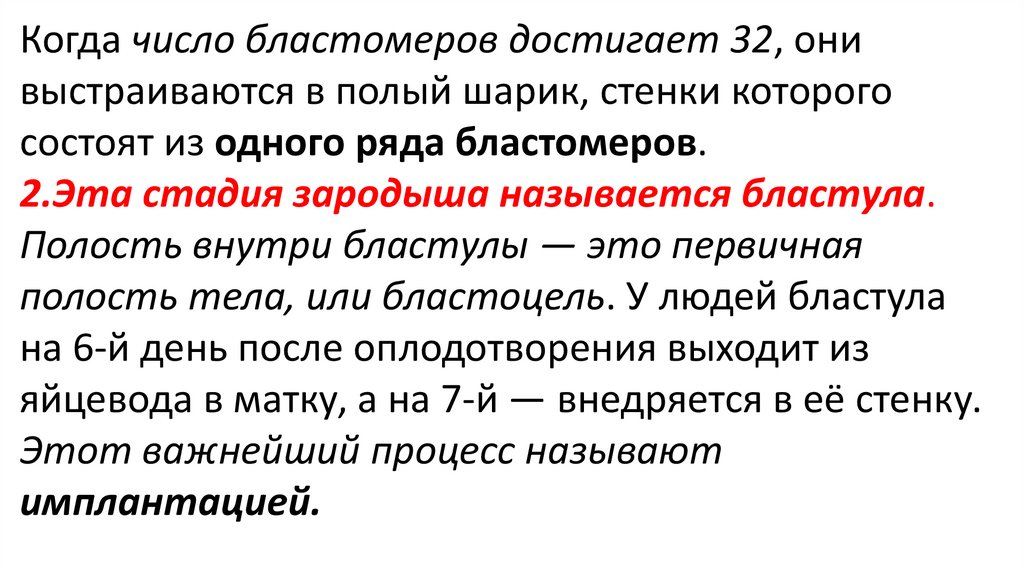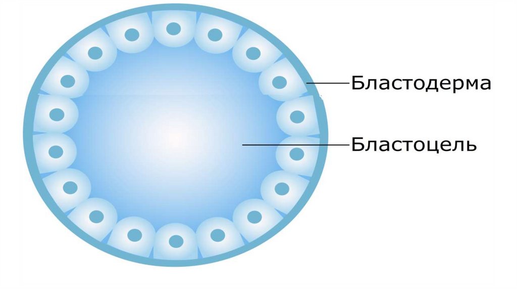 Когда число бластомеров достигает 32, онивыстраиваются в полый шарик, стенки которого