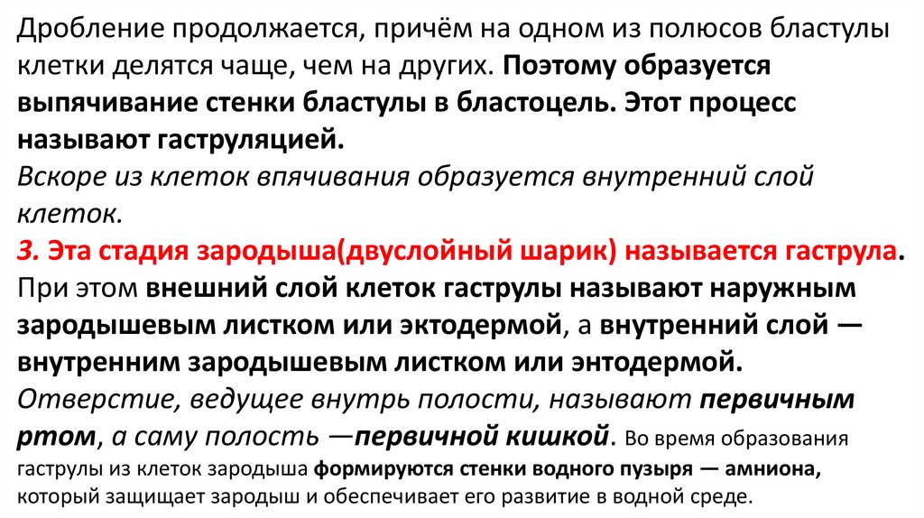 3. Эта стадия зародыша(двуслойный шарик) называется гаструла.