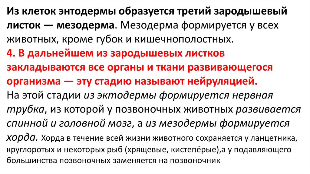 Из клеток энтодермы образуется третий зародышевыйлисток — мезодерма. Мезодерма формируется у всех