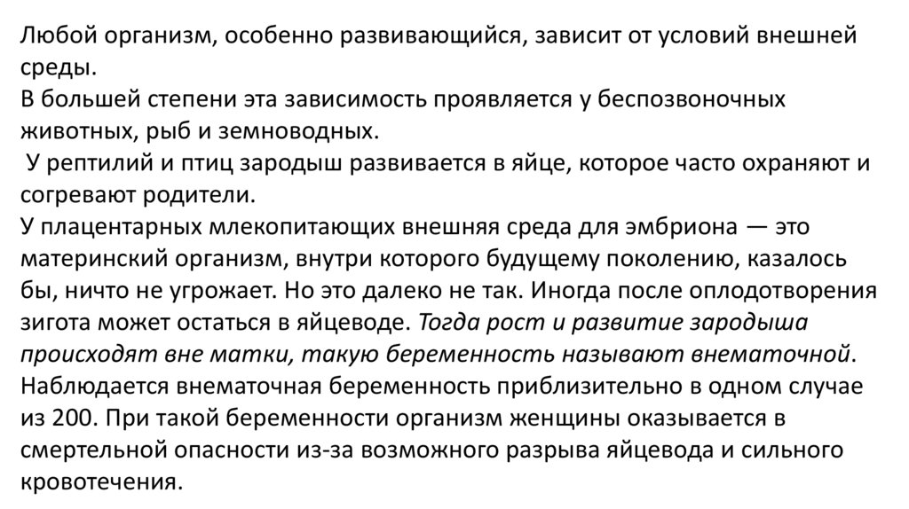 Любой организм, особенно развивающийся, зависит от условий внешнейсреды.