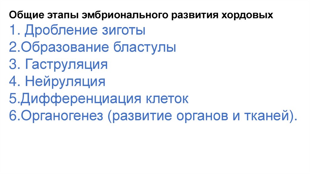 Общие этапы эмбрионального развития хордовых1. Дробление зиготы