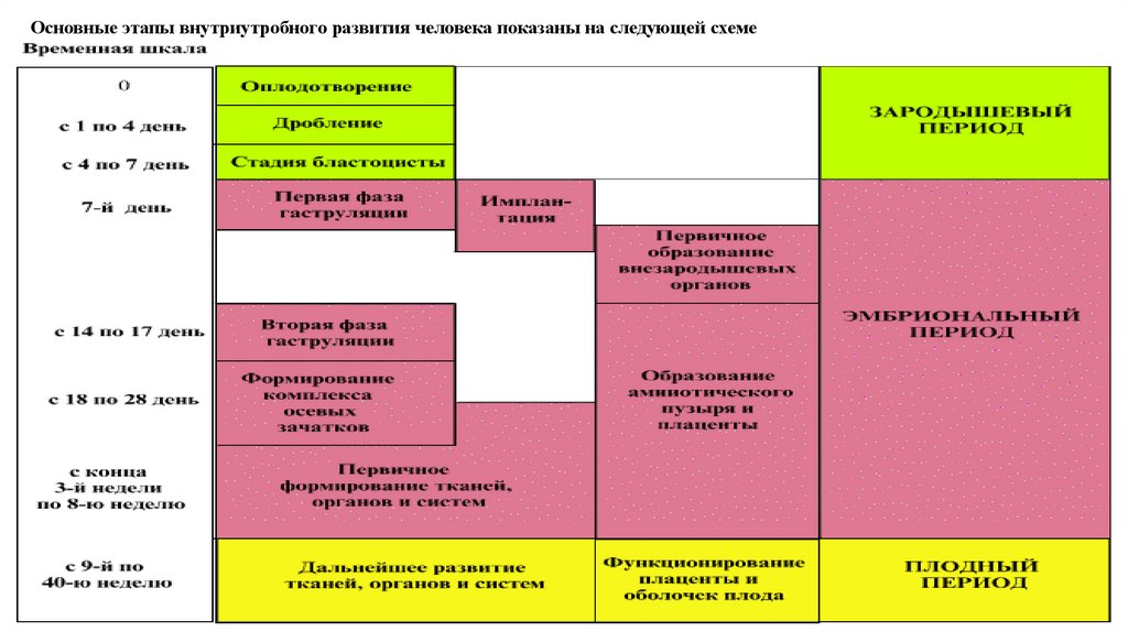 Основные этапы внутриутробного развития человека показаны на следующей схеме6.