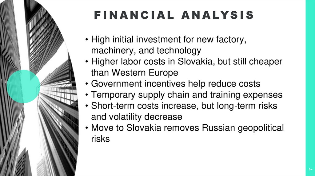 F I N A N C I A L A N A LY S I S• High initial investment for new factory,