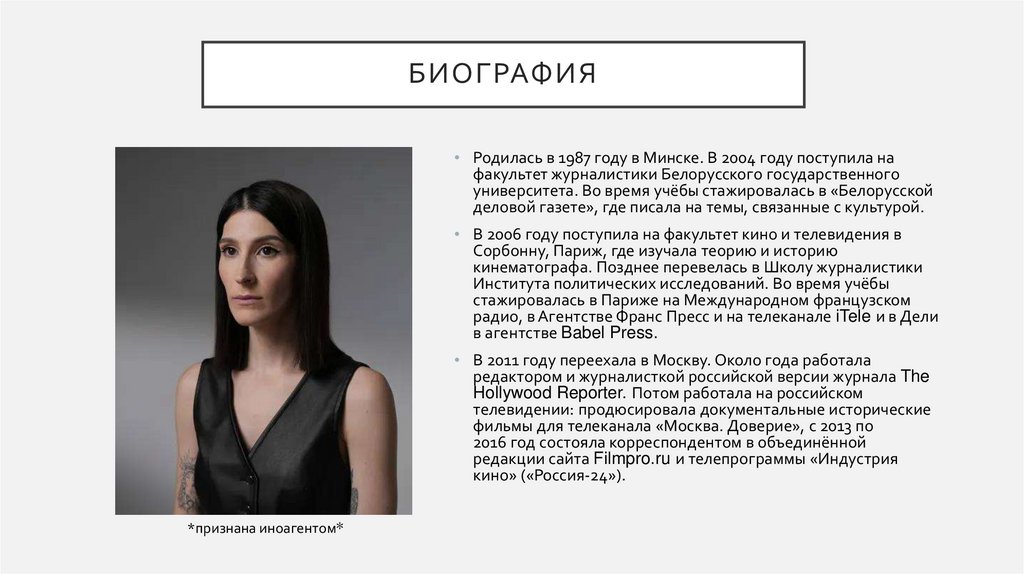 БИОГРАФИЯ• Родилась в 1987 году в Минске. В 2004 году поступила на