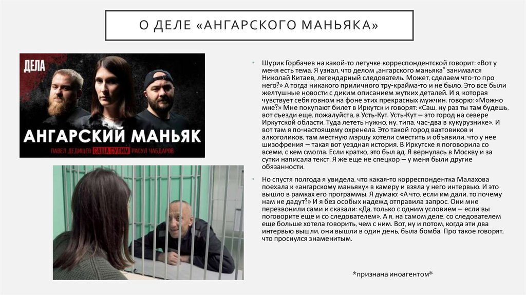 Горбачевым, и он говорит: «Пиши о деле „ангарского маньяка“». И