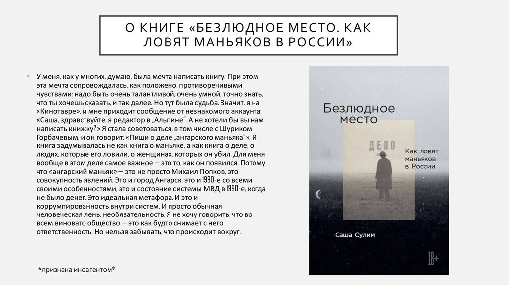 5. О книге «Безлюдное место. Как ловят маньяков в России»