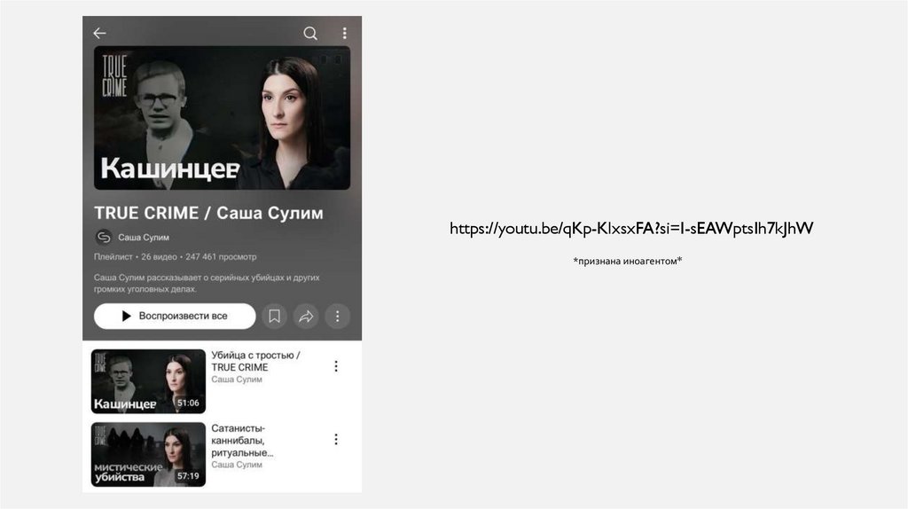 https://youtu.be/qKp-KlxsxFA?si=I-sEAWptsIh7kJhW*признана иноагентом*