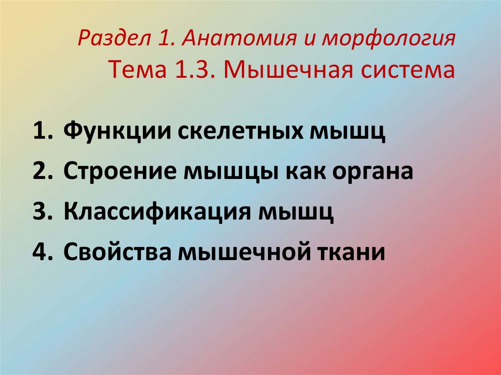 Раздел 1. Анатомия и морфологияТема 1.3. Мышечная система