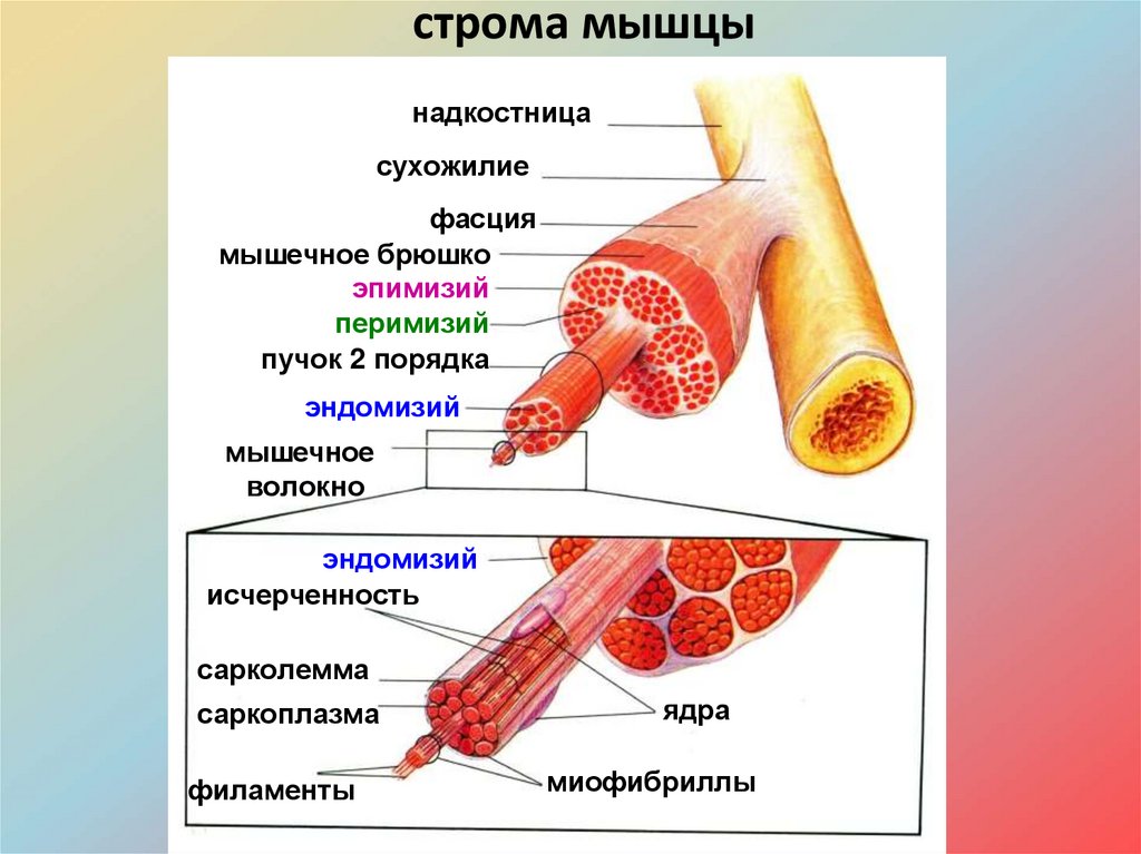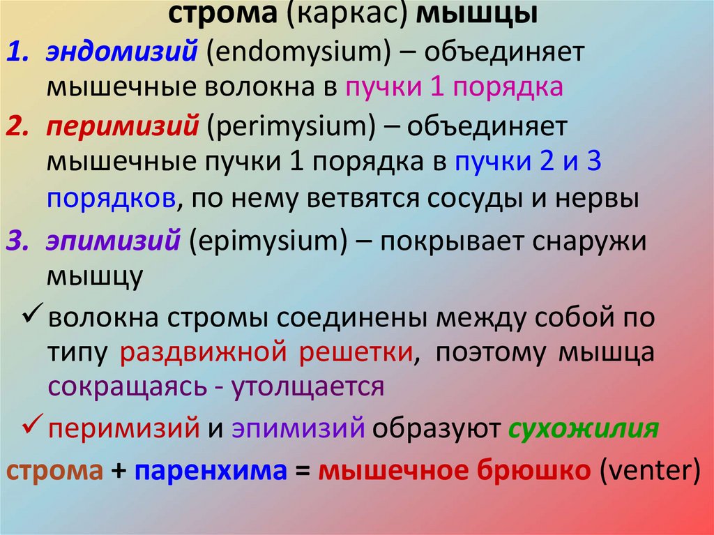1. эндомизий (endomysium) – объединяетмышечные волокна в пучки 1 порядка