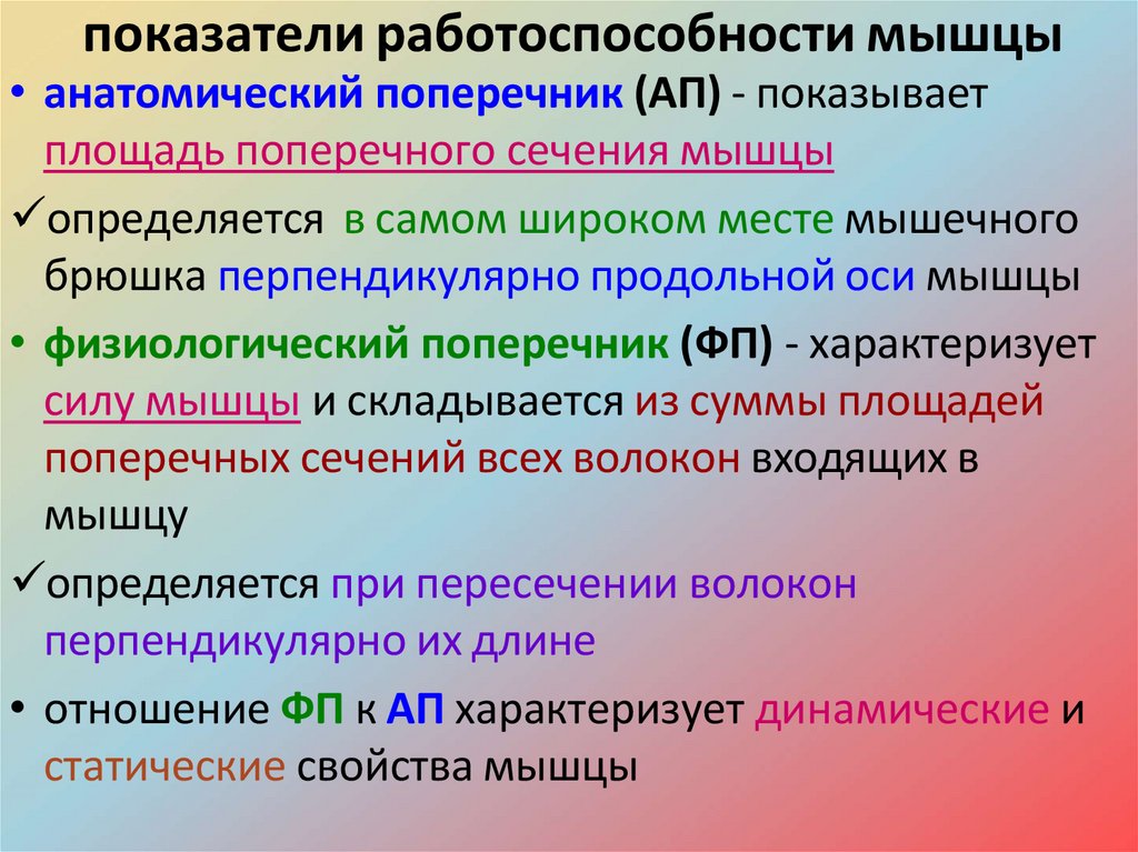 абсолютная сила мышцы (6-16 кг/см2) = макс. масса груза (кг) /