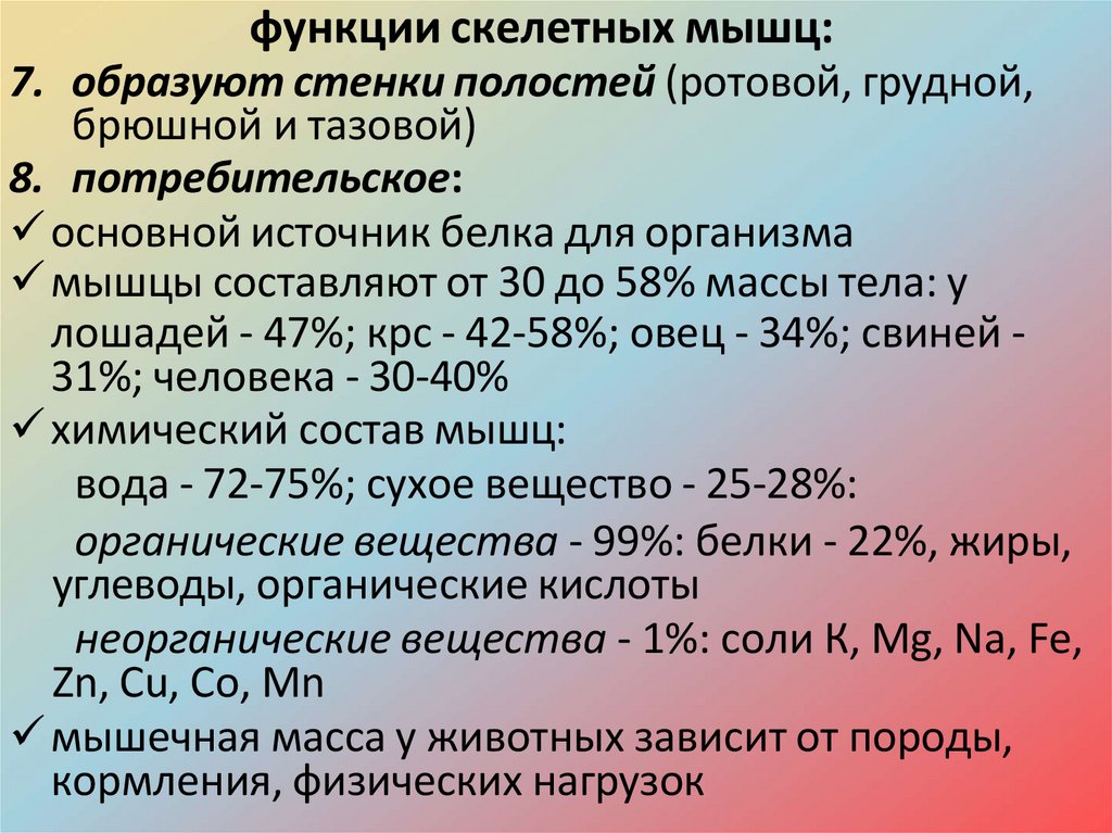 лошадей - 47%; крс - 42-58%; овец - 34%; свиней 31%; человека - 30-40%