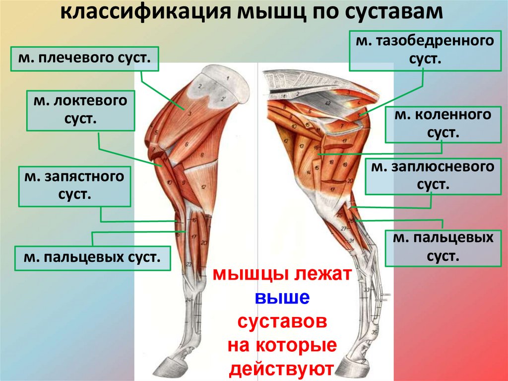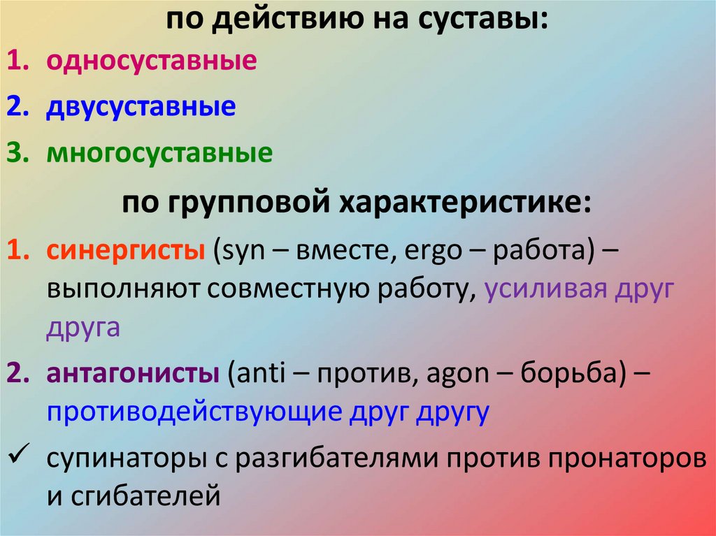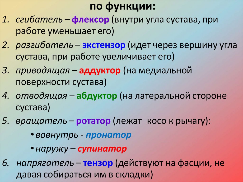 1. сгибатель – флексор (внутри угла сустава, приработе уменьшает его)