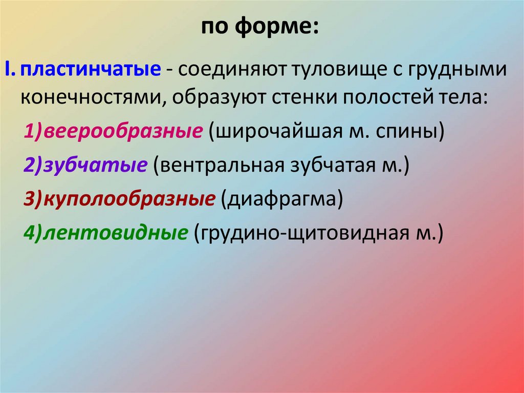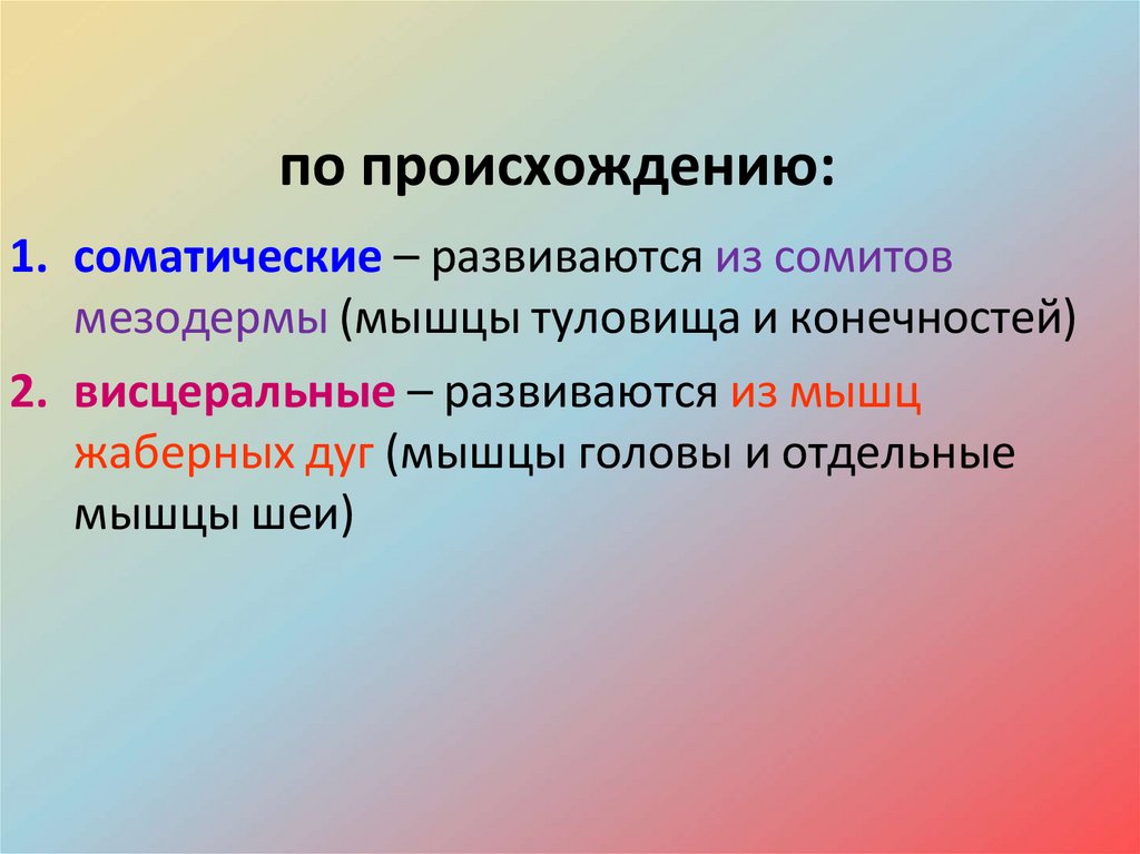 1. соматические – развиваются из сомитовмезодермы (мышцы туловища и конечностей)
