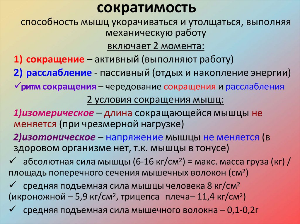способность мышц укорачиваться и утолщаться, выполняямеханическую работу
