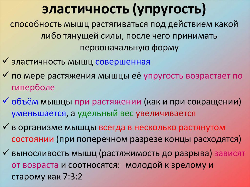 способность мышц растягиваться под действием какойлибо тянущей силы, после чего принимать
