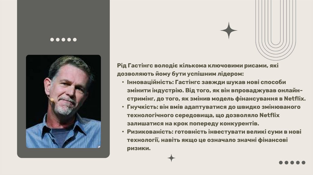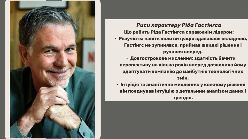 Рід Гастінгс володіє кількома ключовими рисами, якідозволяють йому бути успішним лідером: