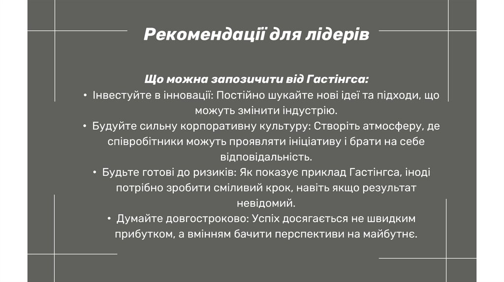 Рекомендації для лідерівЩо можна запозичити від Гастінгса: