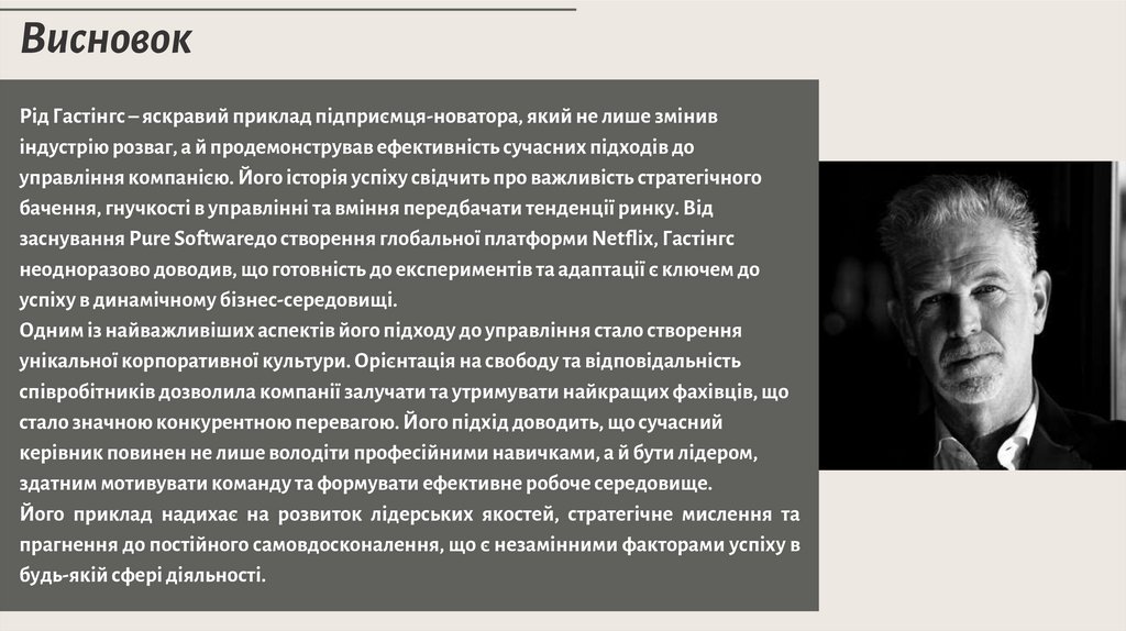 ВисновокРід Гастінгс – яскравий приклад підприємця-новатора, який не лише змінив