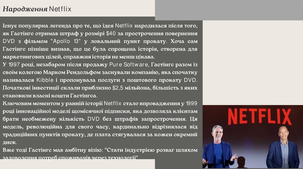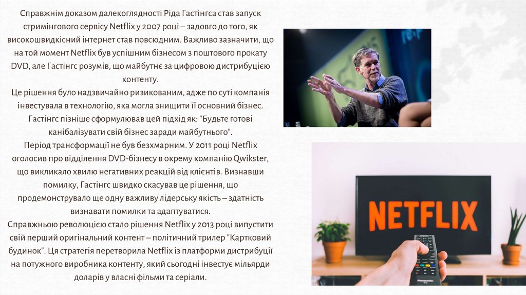змінити індустрію. Від того, як він впроваджував онлайнстримінг, до того, як змінив модель фінансування в Netflix.