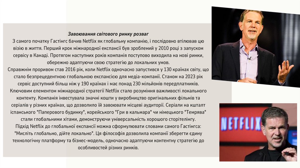 Підхід Netflix до глобальної експансії можна сформулювати словами самого Гастінгса: