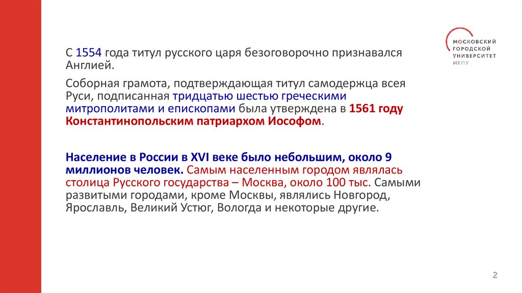 столица Русского государства – Москва, около 100 тыс. Самыми