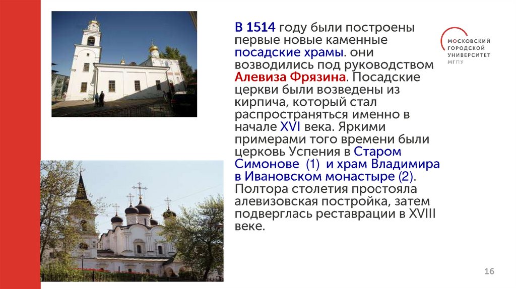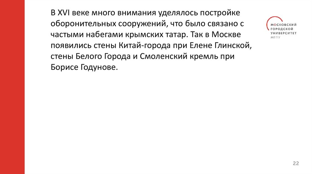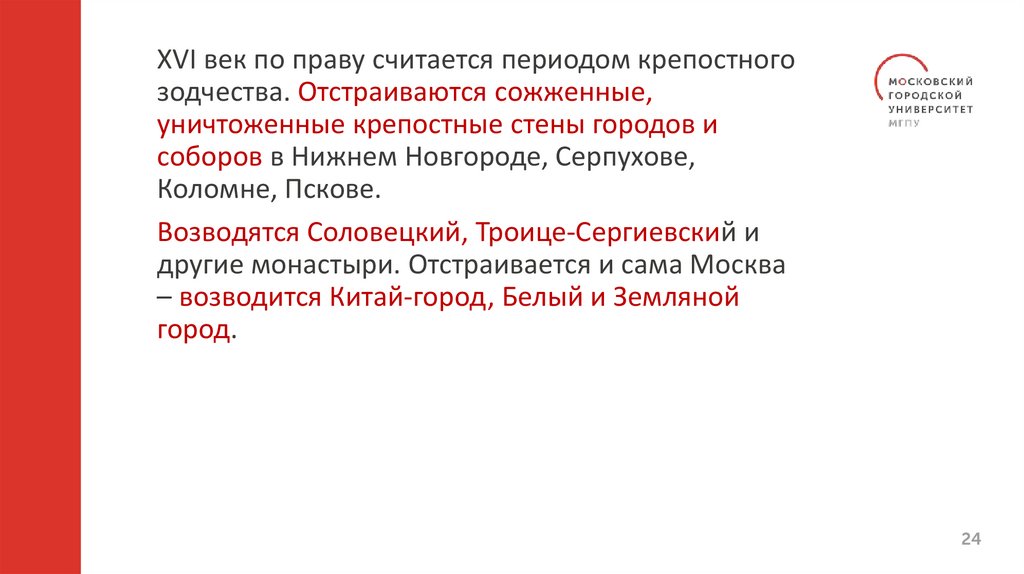 XVI век по праву считается периодом крепостногозодчества. Отстраиваются сожженные,