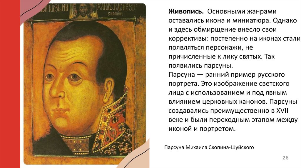 Живопись. Основными жанрамиоставались икона и миниатюра. Однако