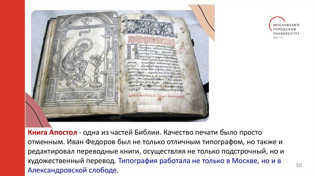 Греком. Иван Фёдоров напечатал первую книгу «Апостол» (разные её