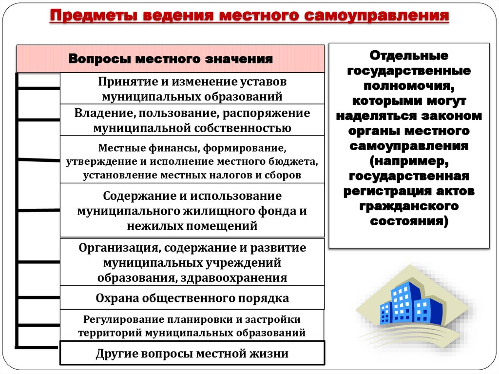 Предметы ведения местного самоуправленияВопросы местного значения
