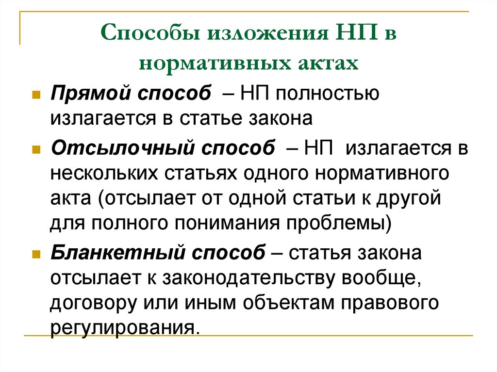 18. Способы изложения НП в нормативных актах