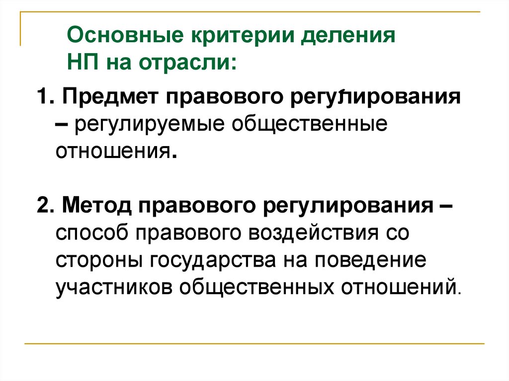 Основные критерии деленияНП на отрасли:
