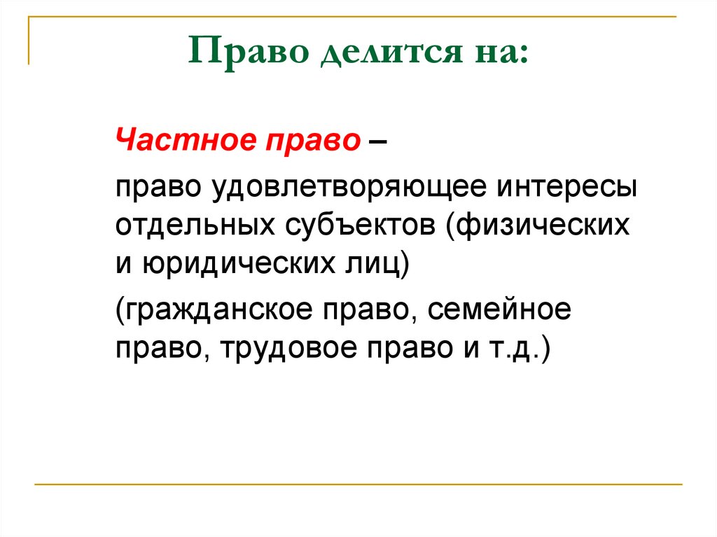 Частное право –право удовлетворяющее интересы