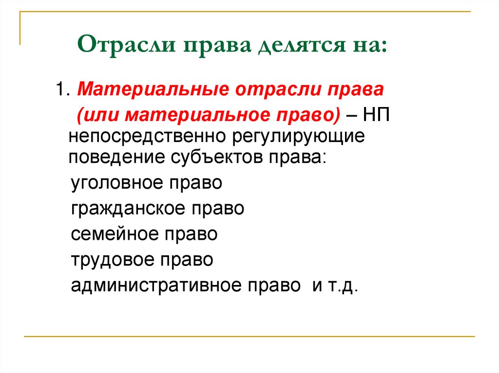 1. Материальные отрасли права(или материальное право) – НП