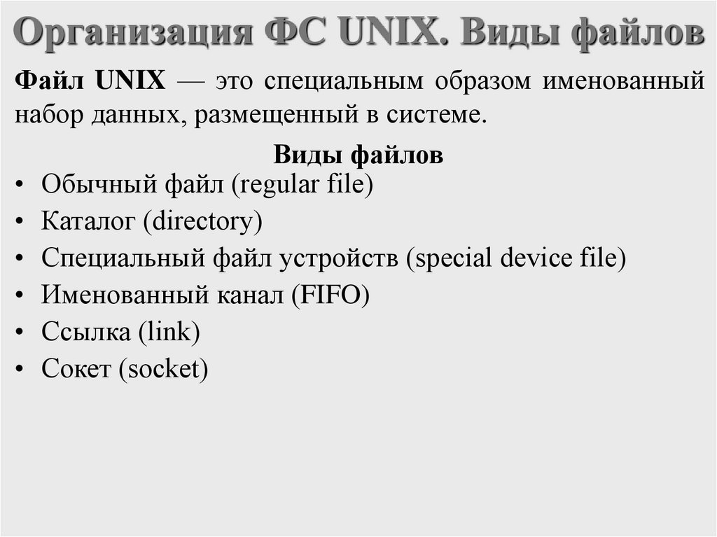 Файловые системы (часть 2)2. Организация ФС UNIX. Виды файлов