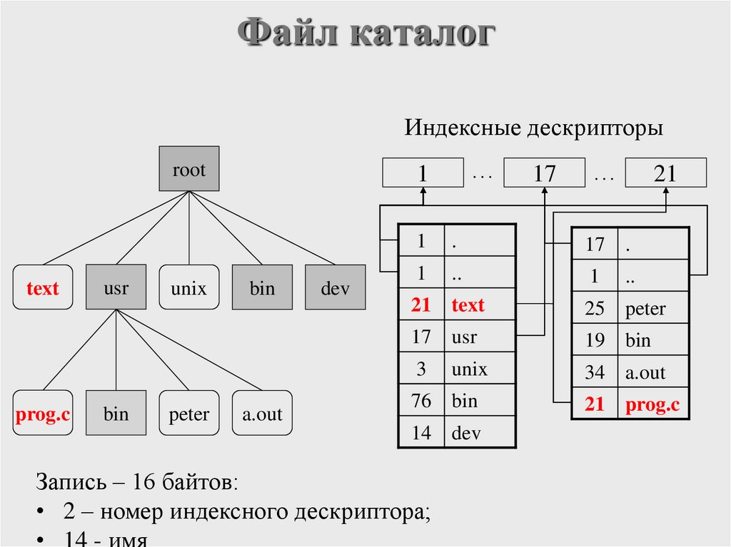 совпадает с именем файла-каталога filename, номер индексного дескриптор в этой записи - ИД_