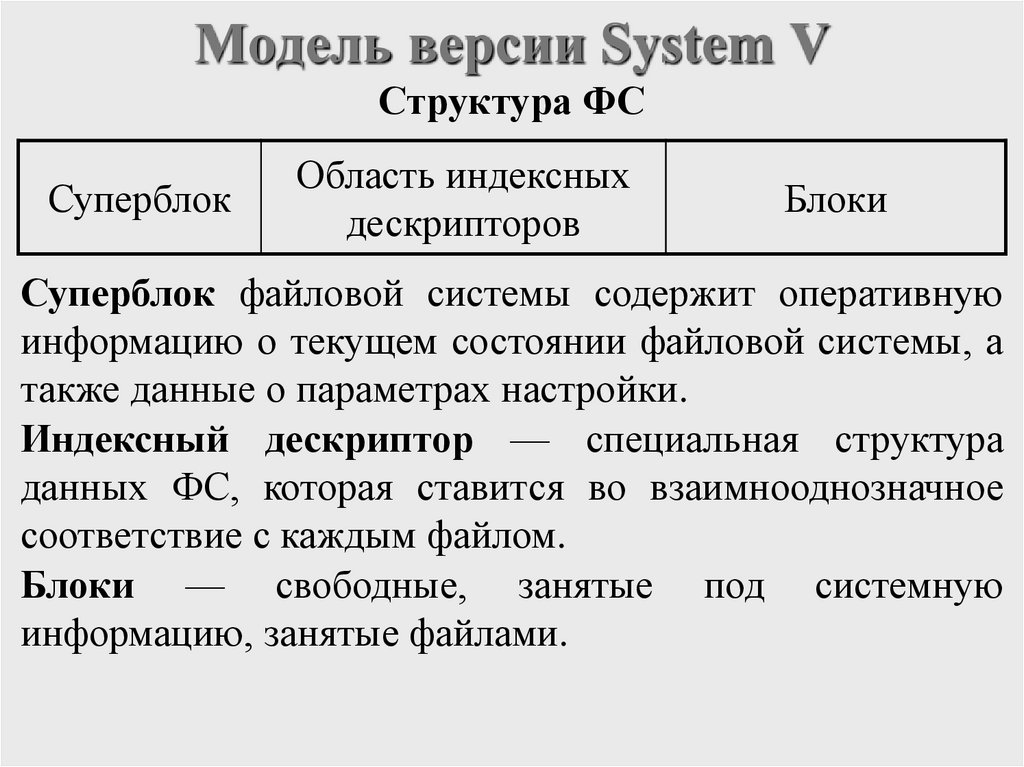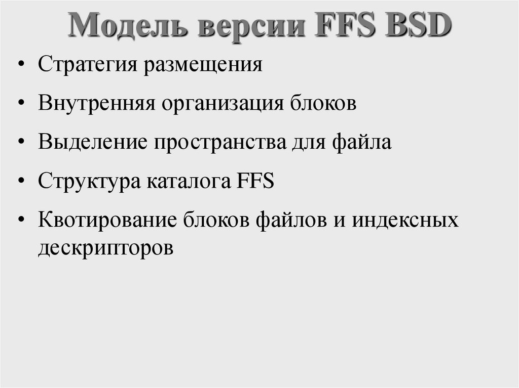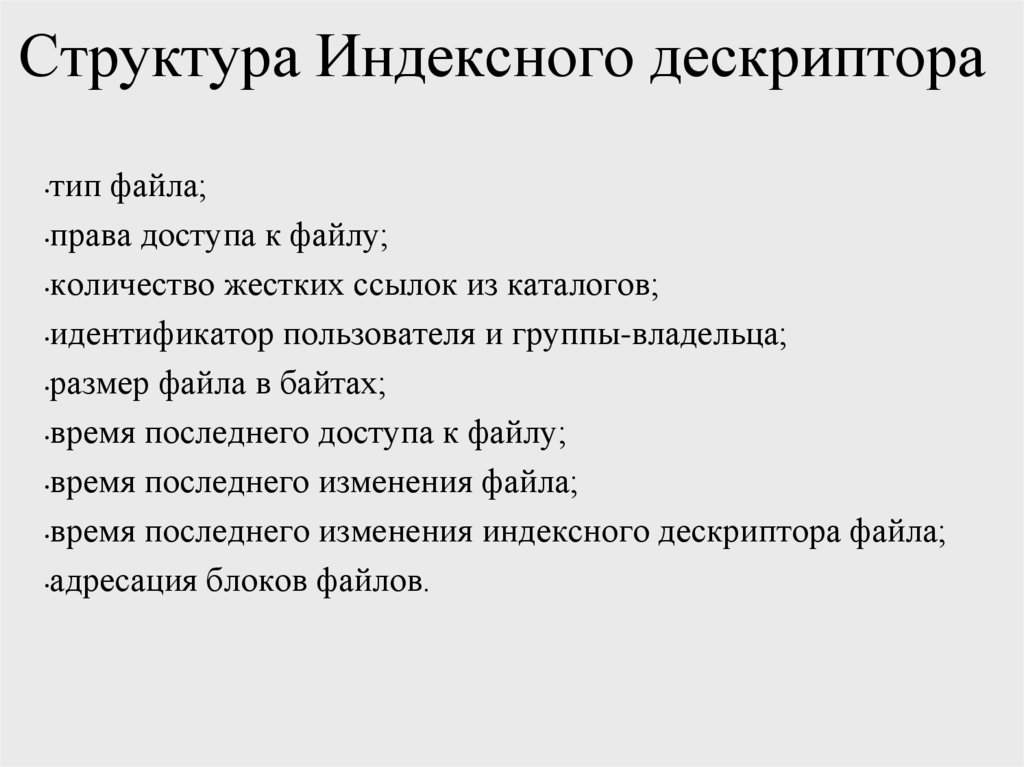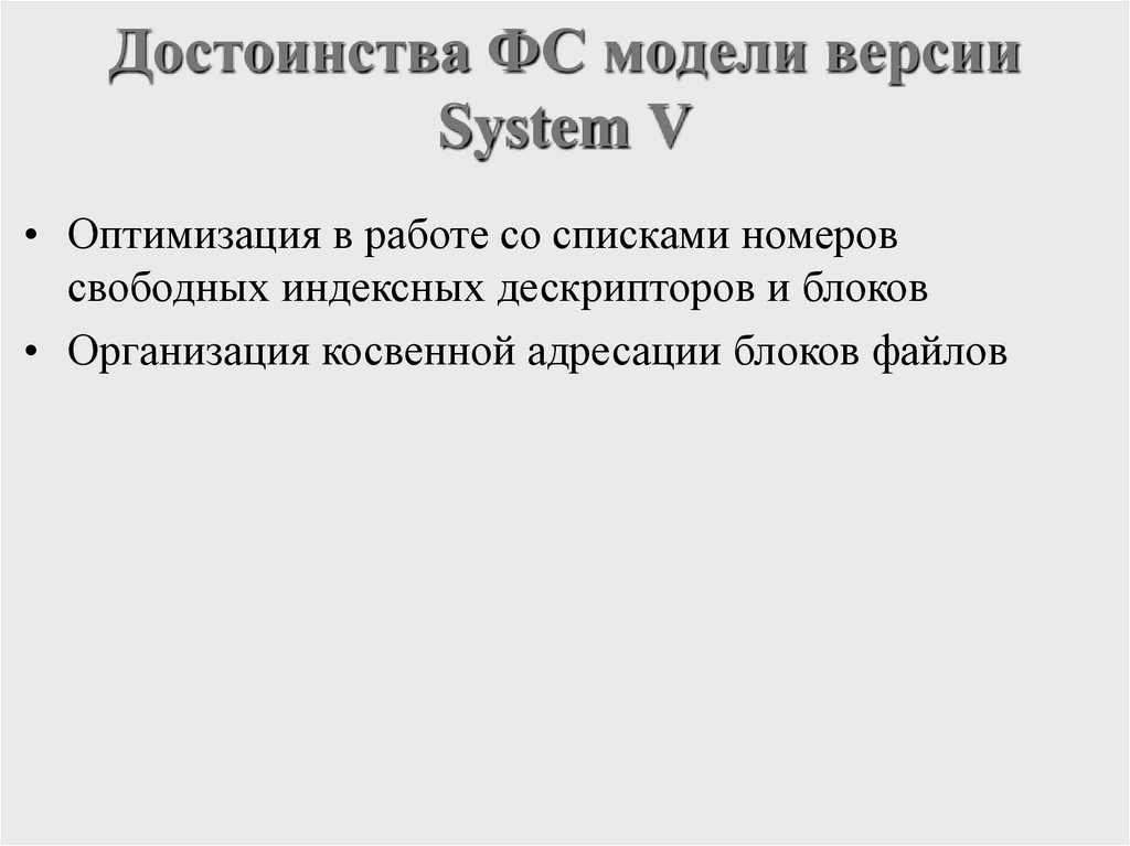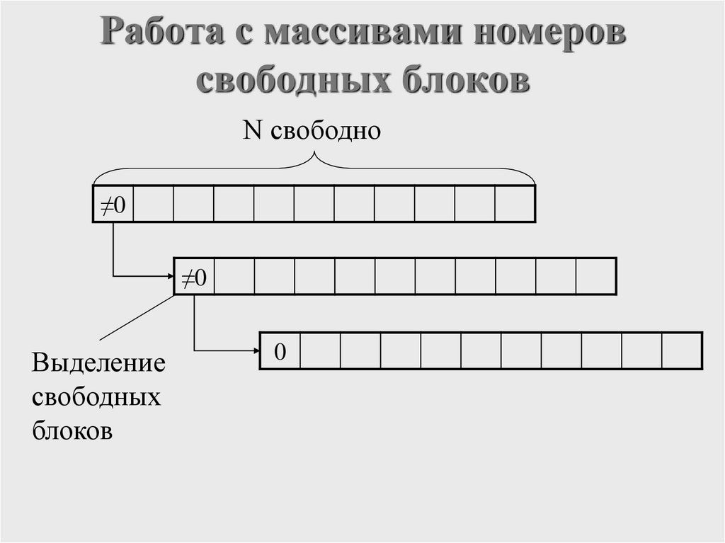 • Оптимизация в работе со списками номеровсвободных индексных дескрипторов и блоков