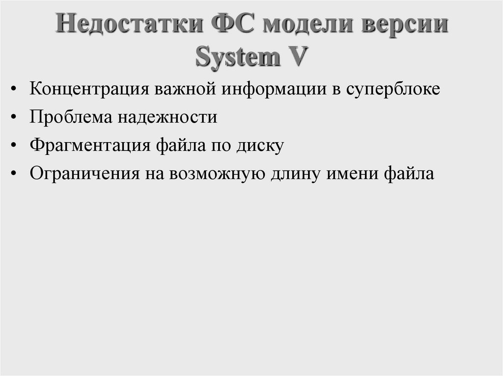 • Концентрация важной информации в суперблоке• Проблема надежности