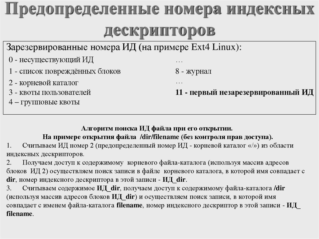 Зарезервированные номера ИД (на примере Ext4 Linux):0 - несуществующий ИД