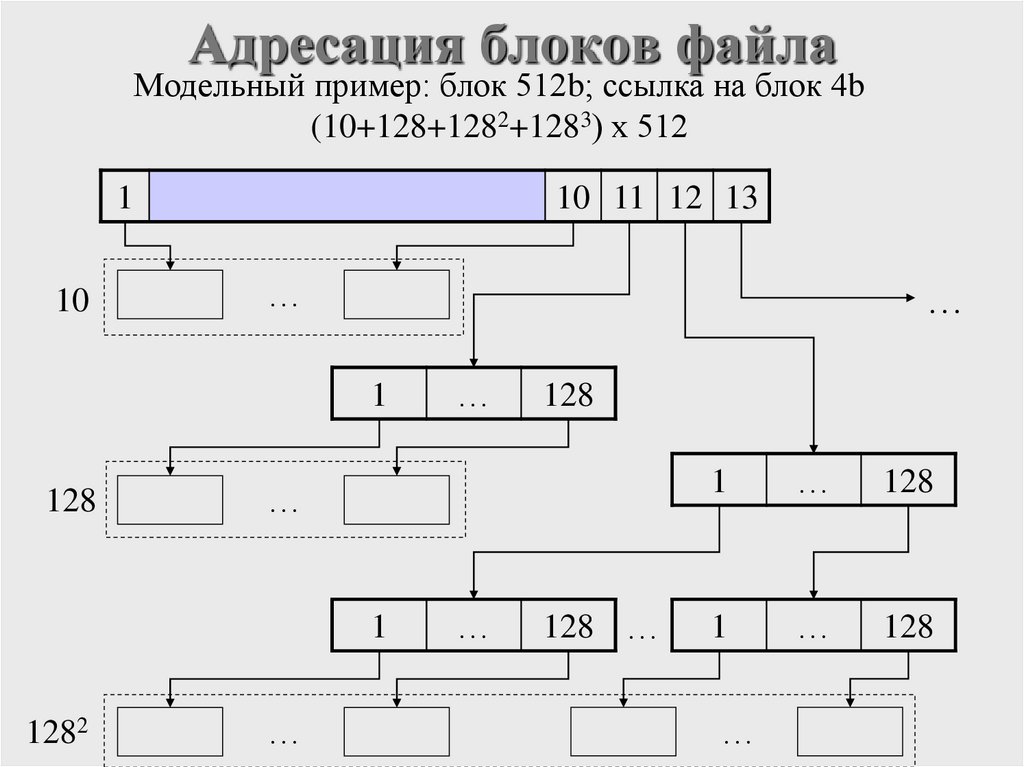 Модельный пример: блок 512b; ссылка на блок 4b(10+128+1282+1283) х 512