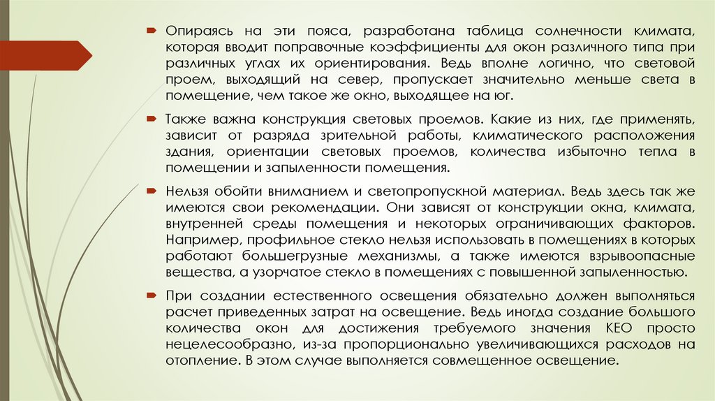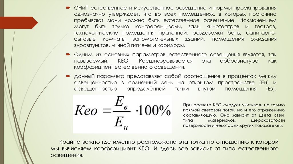 При расчете КЕО следует учитывать не только
