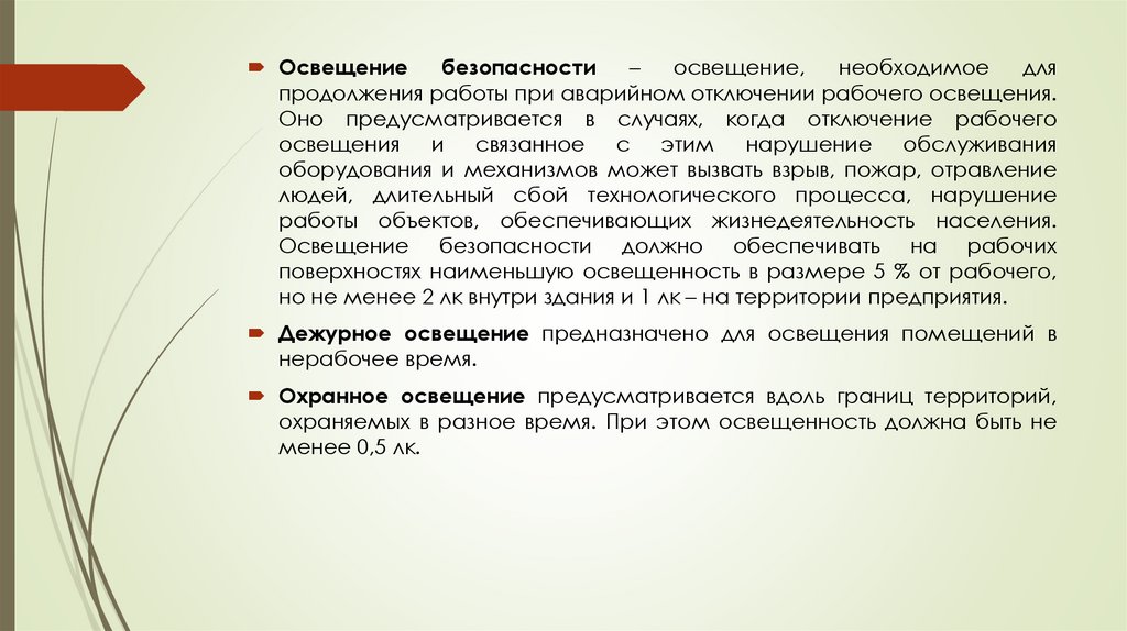 Освещение безопасности должно обеспечивать на рабочих