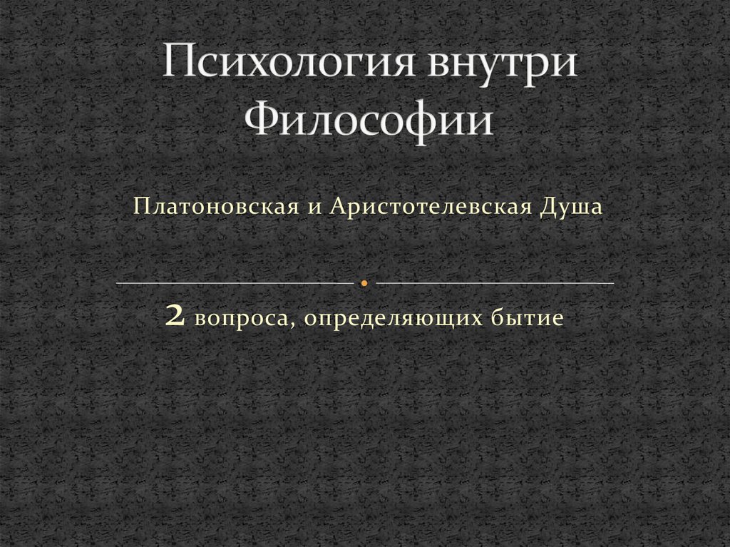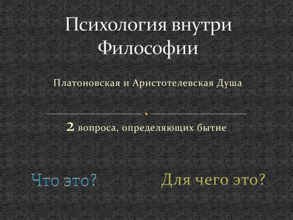 Платоновская и Аристотелевская Душа2 вопроса, определяющих бытие