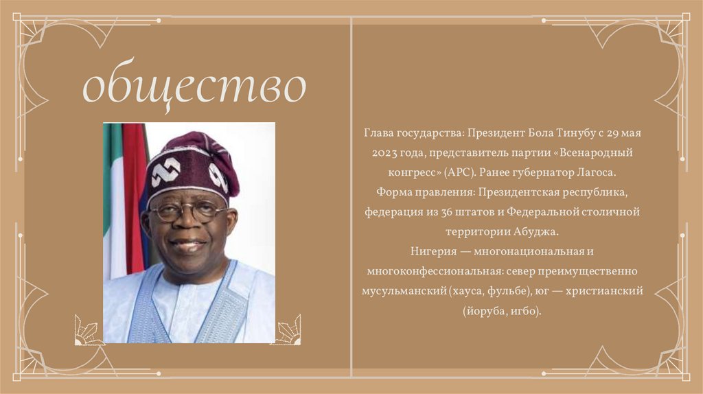обществоГлава государства: Президент Бола Тинубу с 29 мая
