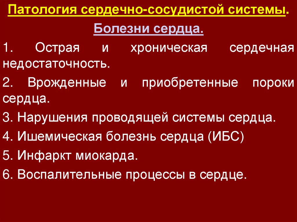 Патология сердечно-сосудистой системы.Болезни сердца.