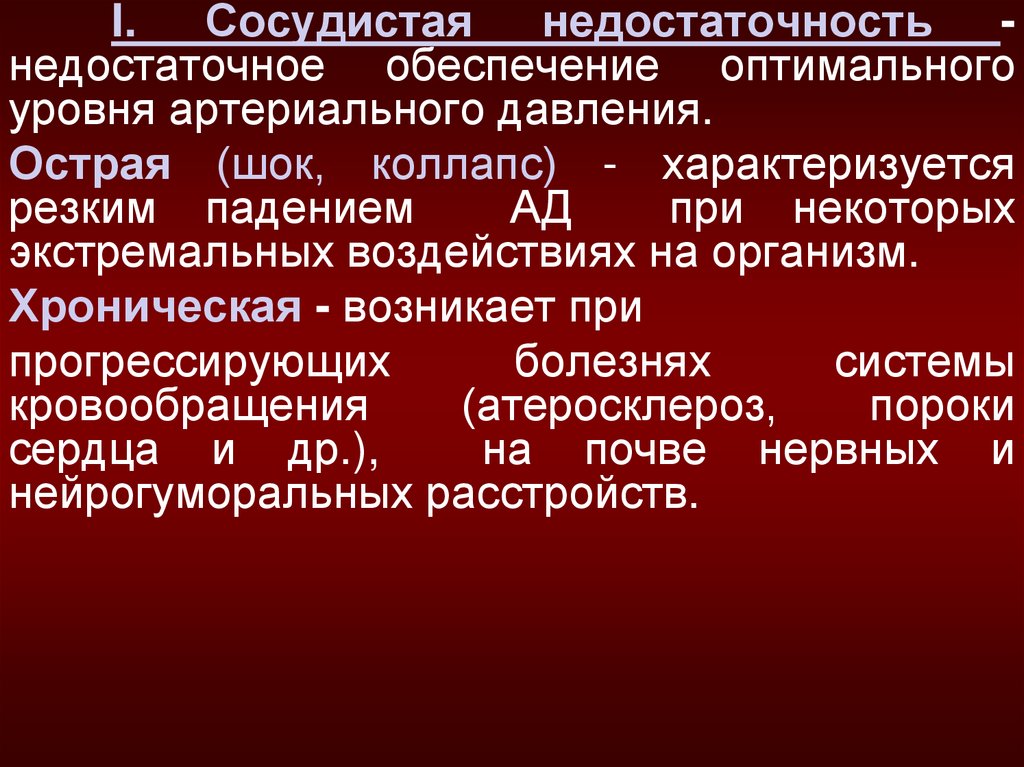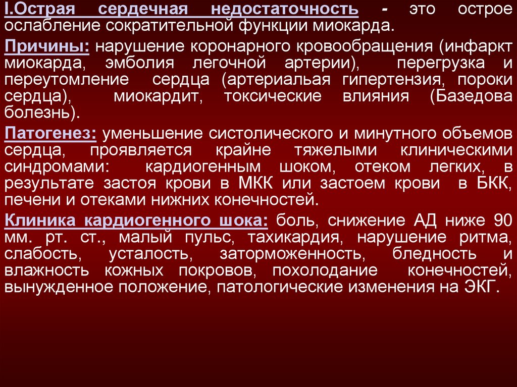 I.Острая сердечная недостаточность - это остроеослабление сократительной функции миокарда.