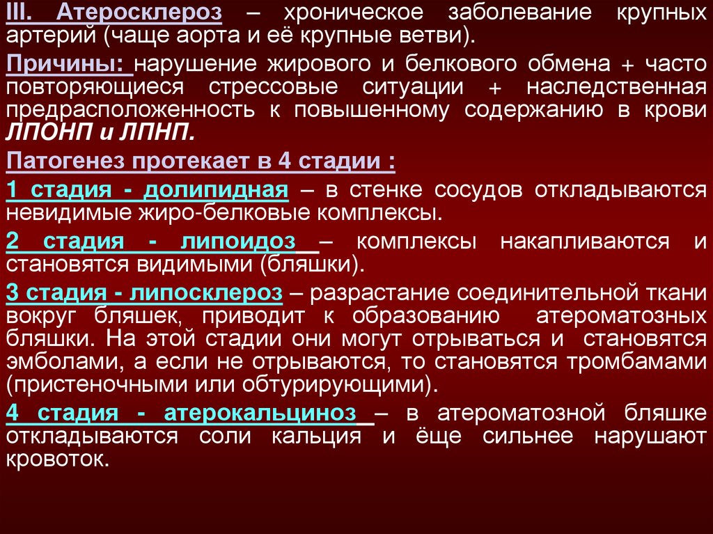 4 стадия - атерокальциноз – в атероматозной бляшке