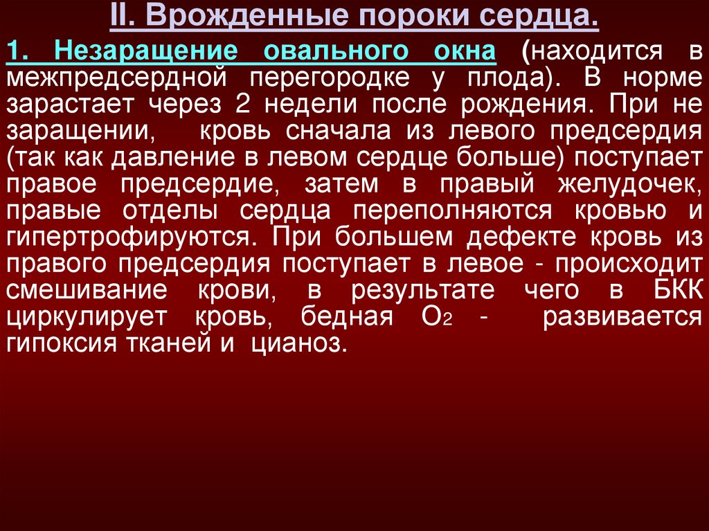 II. Врожденные пороки сердца.1. Незаращение овального окна (находится в