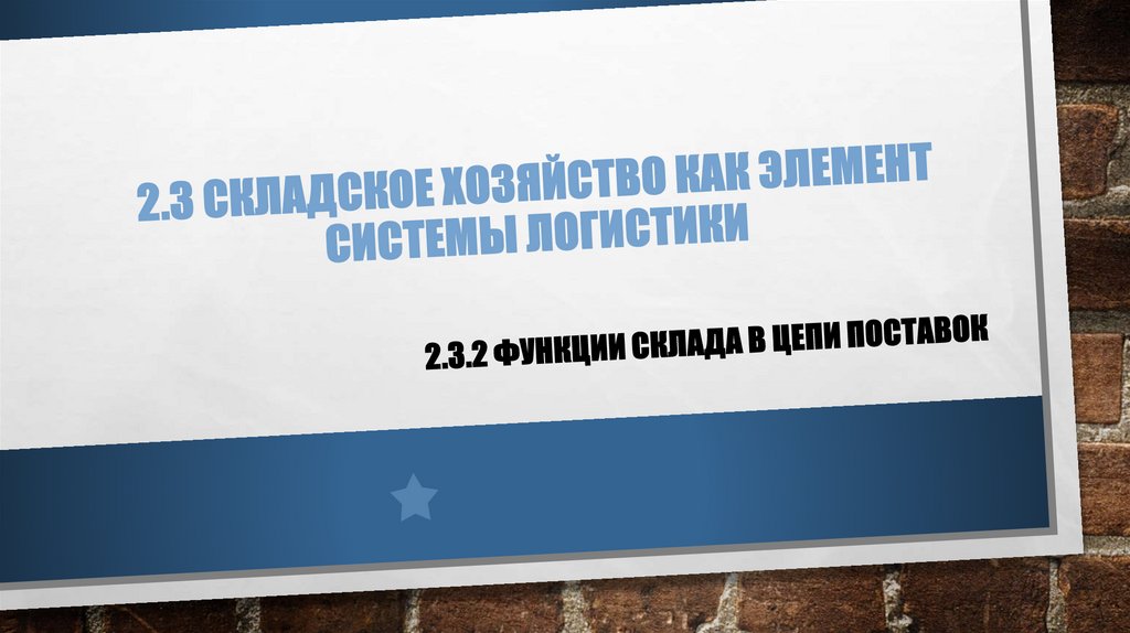 Тема 2.3.2 Функции склада в цепи поставок (2)